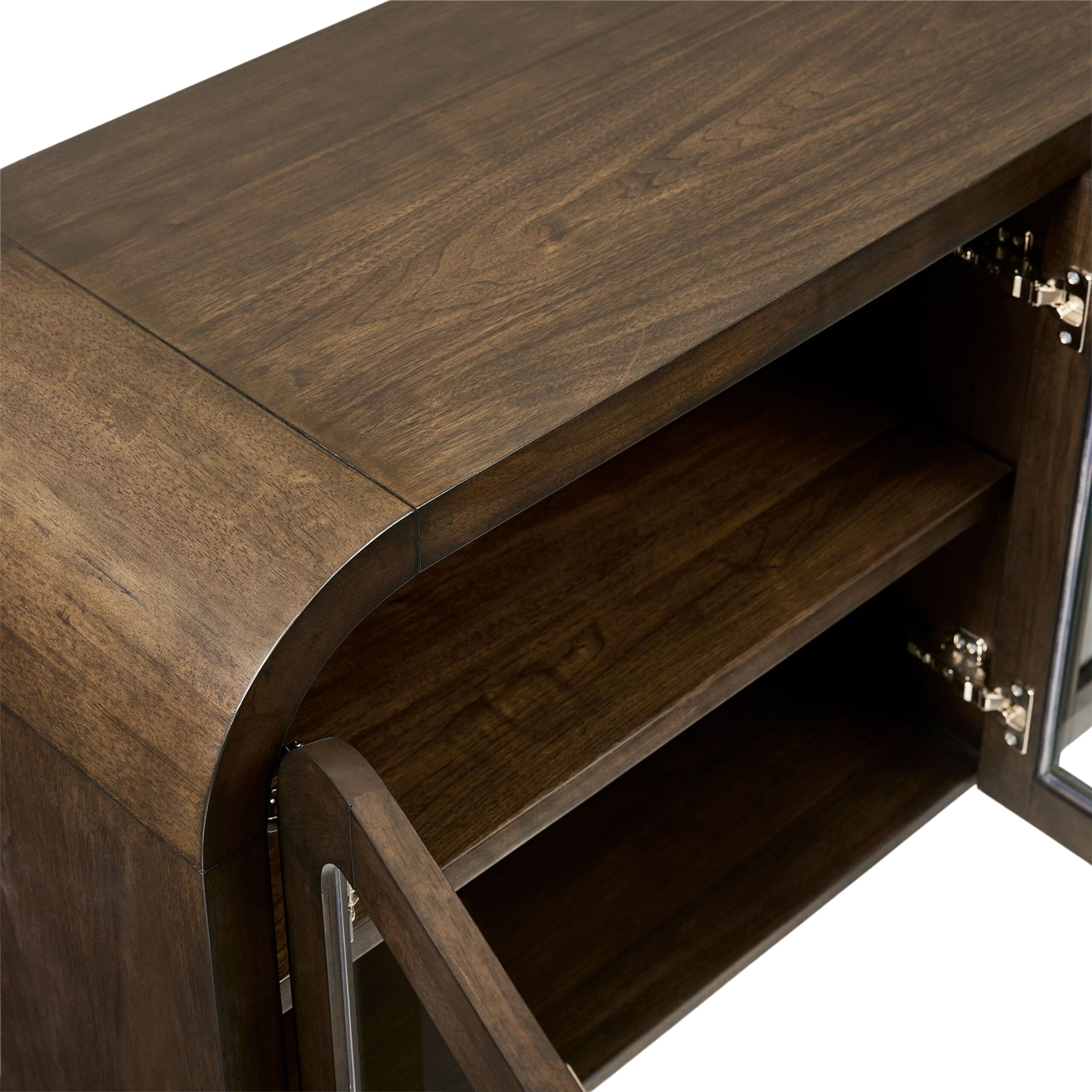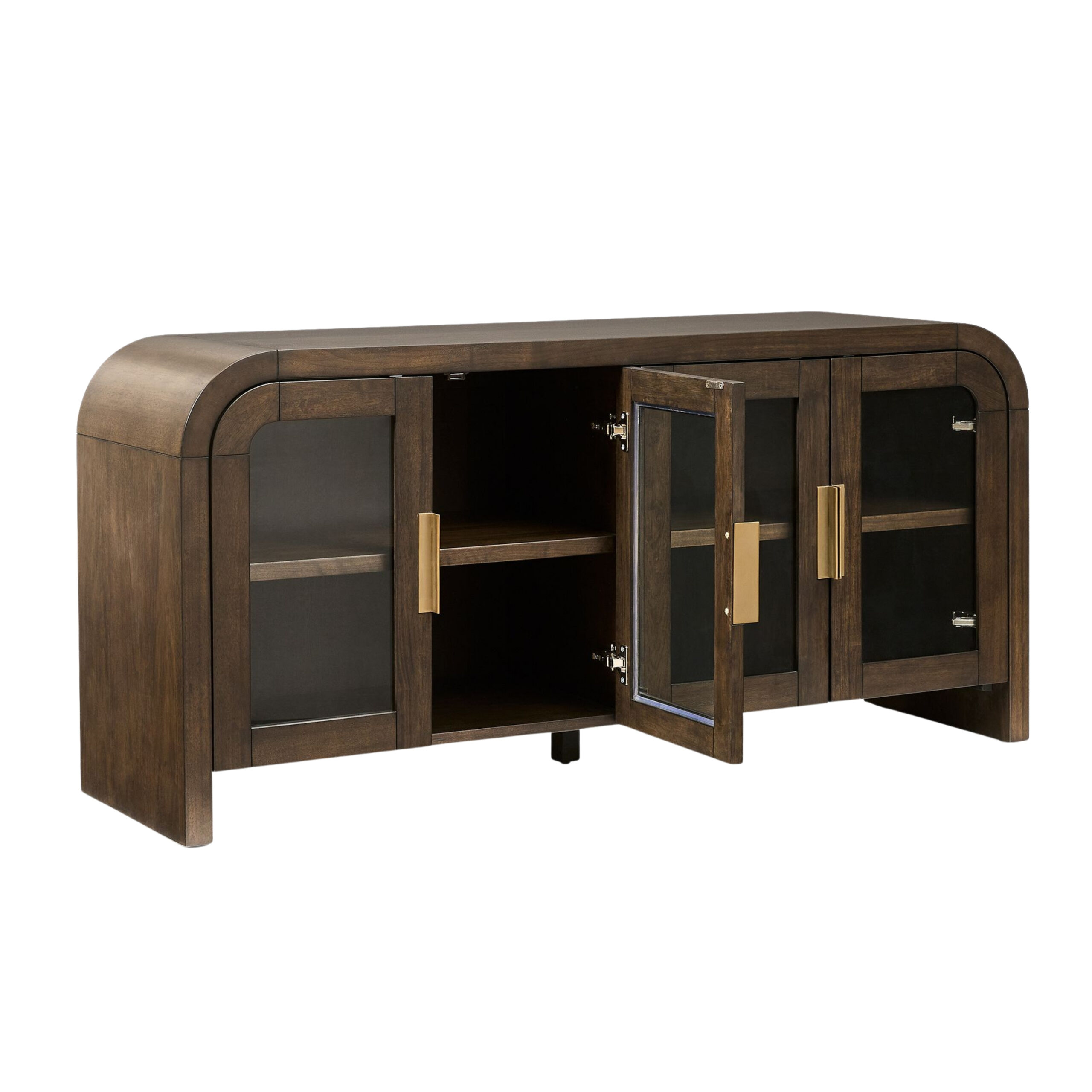 Yuvarlatılmış köşeleri, koyu ahşap dokusu ve cam kapak detaylarıyla öne çıkan Modena Büfe, zamansız bir şıklık sunar. Pirinç tonlarındaki kulplar ise sofistike bir dokunuş katarken, iç bölmeleri sayesinde estetikle birlikte düzeni de ön planda tutar. Modern klasik tarzı sevenler için güçlü bir karaktere sahip.